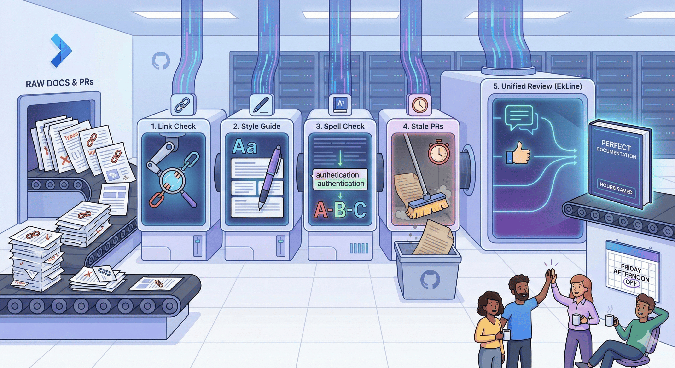 Here's the thing nobody tells you about running a docs-focused company: you become absurdly paranoid about your own documentation. Every broken link feels personal. Every style inconsistency keeps you up at night. But we're a small team people — we can't spend our days playing copy editor on every PR.