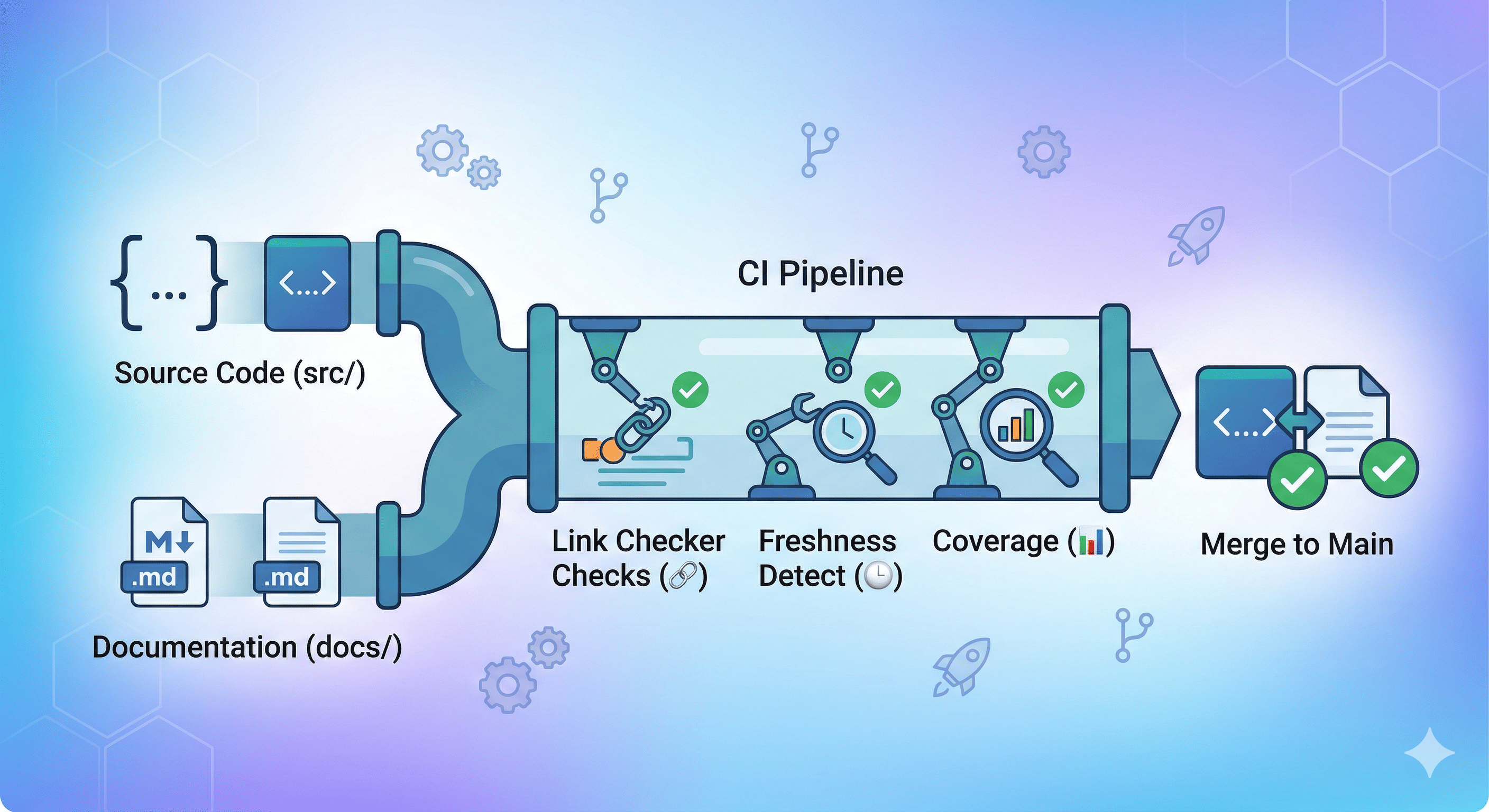 The difference between Stripe's 0 broken links and FastAPI's 132 is not that Stripe's team is more careful. It is that broken links get caught before they merge.